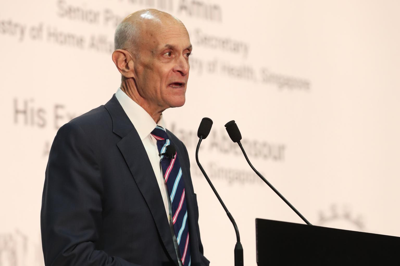 Former United States secretary for homeland security Michael Chertoff speaking at the regional security conference Milipol Asia-Pacific 2019 at Marina Bay Sands Expo and Convention Centre on April 3, 2019.