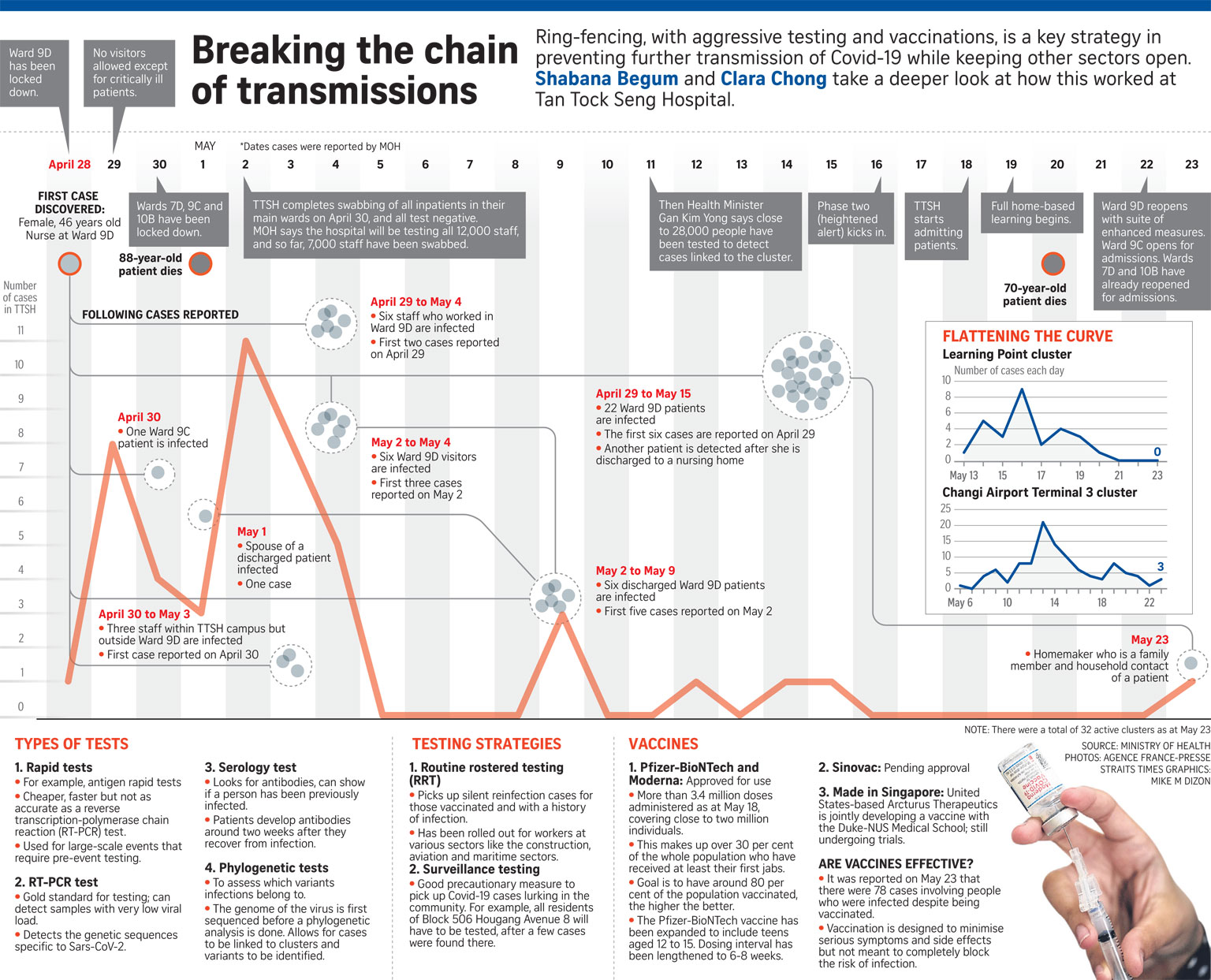 More recently, the approach was used in Tan Tock Seng Hospital (TTSH) with some success. When a 46-year-old nurse followed by a few patients in Ward 9D were diagnosed with Covid-19, the hospital moved quickly to close the ward.