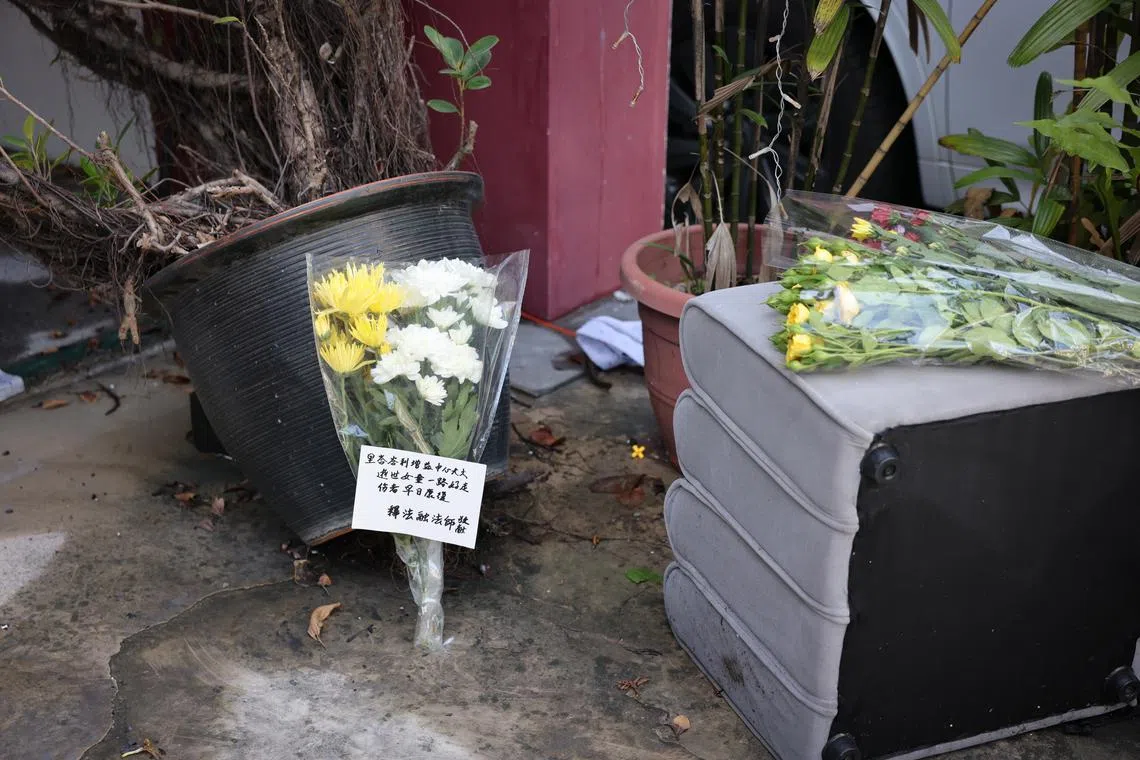 Several bouquets of flowers were left at the scene, which has been cordoned off.