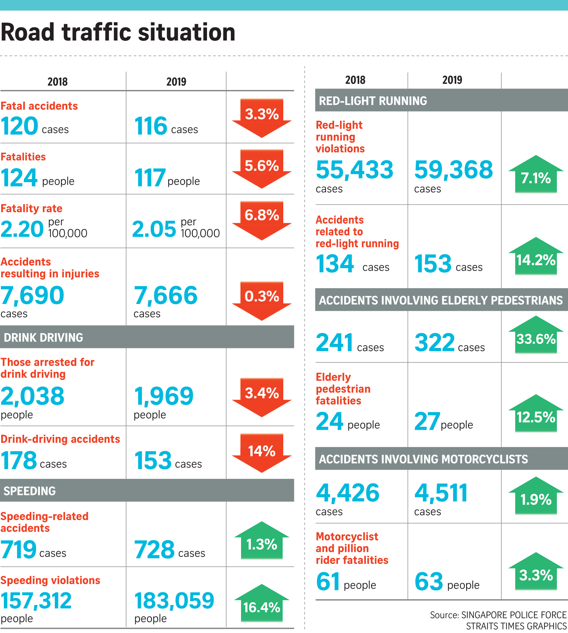 While the road traffic situation for last year has improved overall, SAC Lim said the figures were "still not rosy" - particularly with regard to the elderly and motorcyclists.