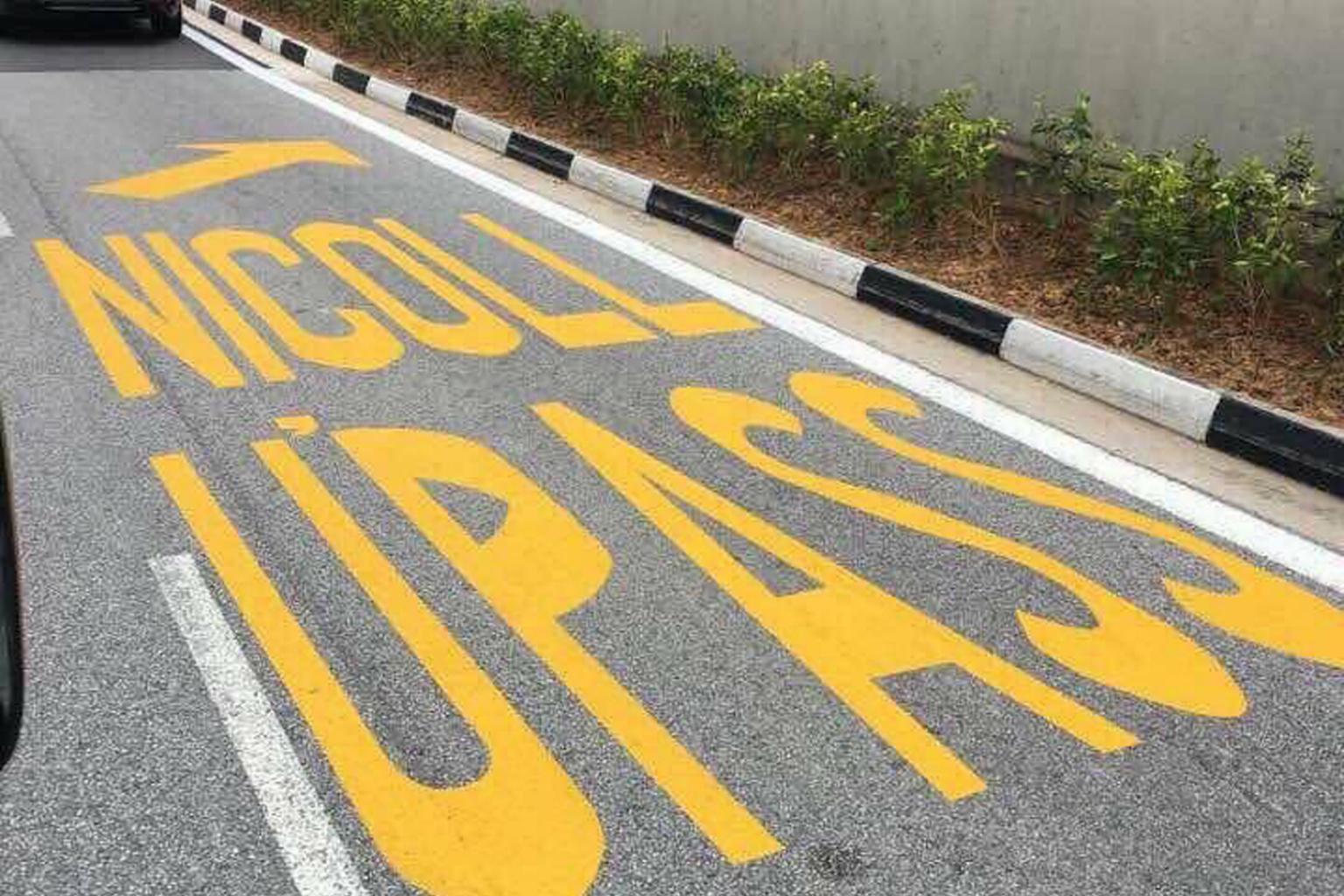 The marking, which read "Nicoll U'pass", indicated the direction of a new underpass linking the Kallang-Paya Lebar Expressway (KPE) to Nicoll Highway.