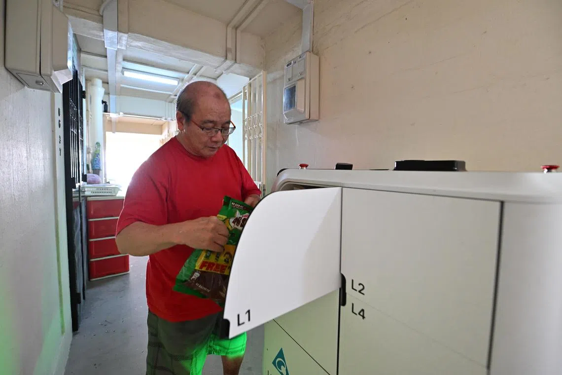 Last week, Mr Seow Thian Kee, 73, who is retired, opened his door to Aiden, which announced, “I have arrived at my destination”. Aiden scanned a QR code on Mr Seow’s pass and popped open a compartment door, allowing him to retrieve the items in it.