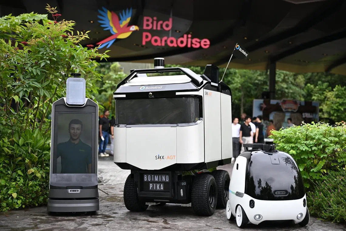 The three robots, which will be deployed in the first quarter of 2025, were unveiled on Nov 19 at a media showcase of a trial held by Mandai Wildlife Group (MWG), in collaboration with the Infocomm Media Development Authority (IMDA).