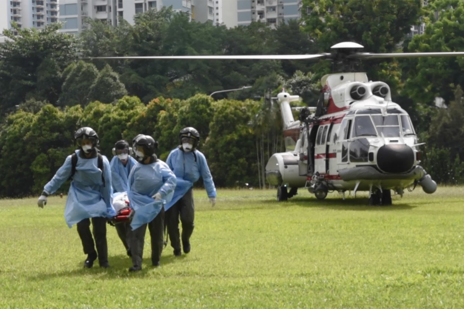 Two photographs of the rescue were posted on the RSAF's Facebook page. In one of them, an individual is seen being carried on a stretcher after landing in a Super Puma helicopter on an open field.