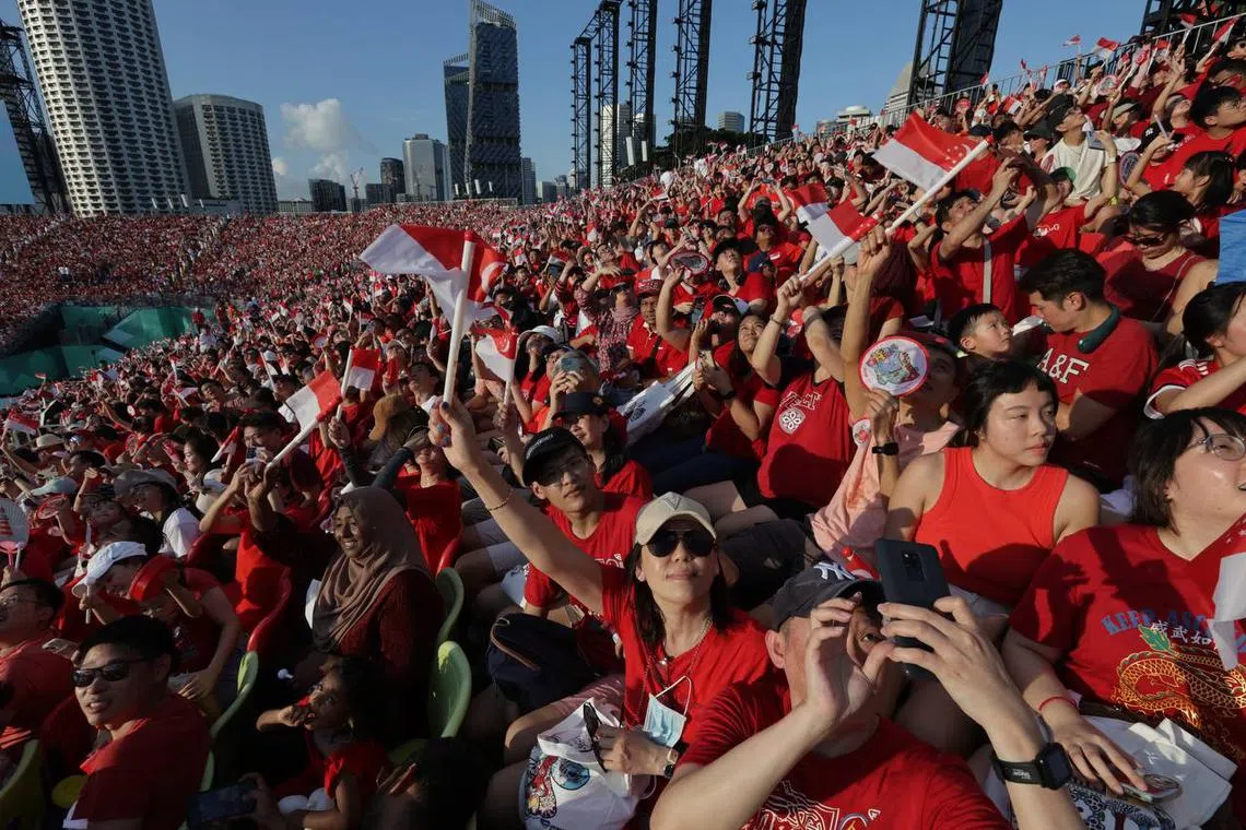 Spectators watching the state flag fly-past during the National Day Parade at the Padang on Aug 9.