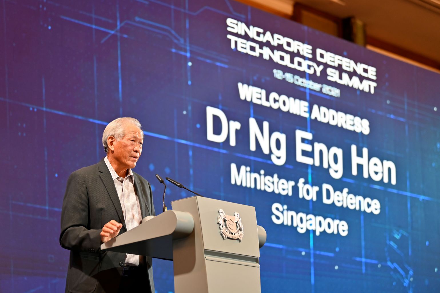 Defence Minister Ng Eng Hen at the third Singapore Defence Technology Summit on Oct 12, 2021.