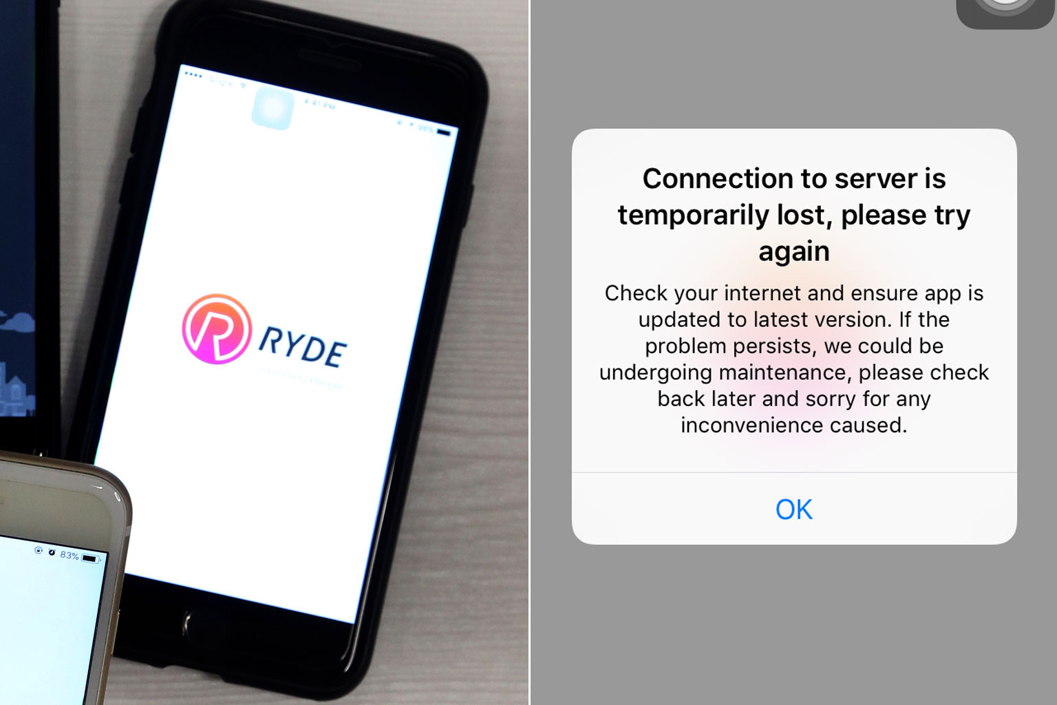 Facebook user Jimmy Lesley Ng said at about 8am that he had a ride scheduled for 7.40am but had no way of contacting the Ryde driver as the app did not work.