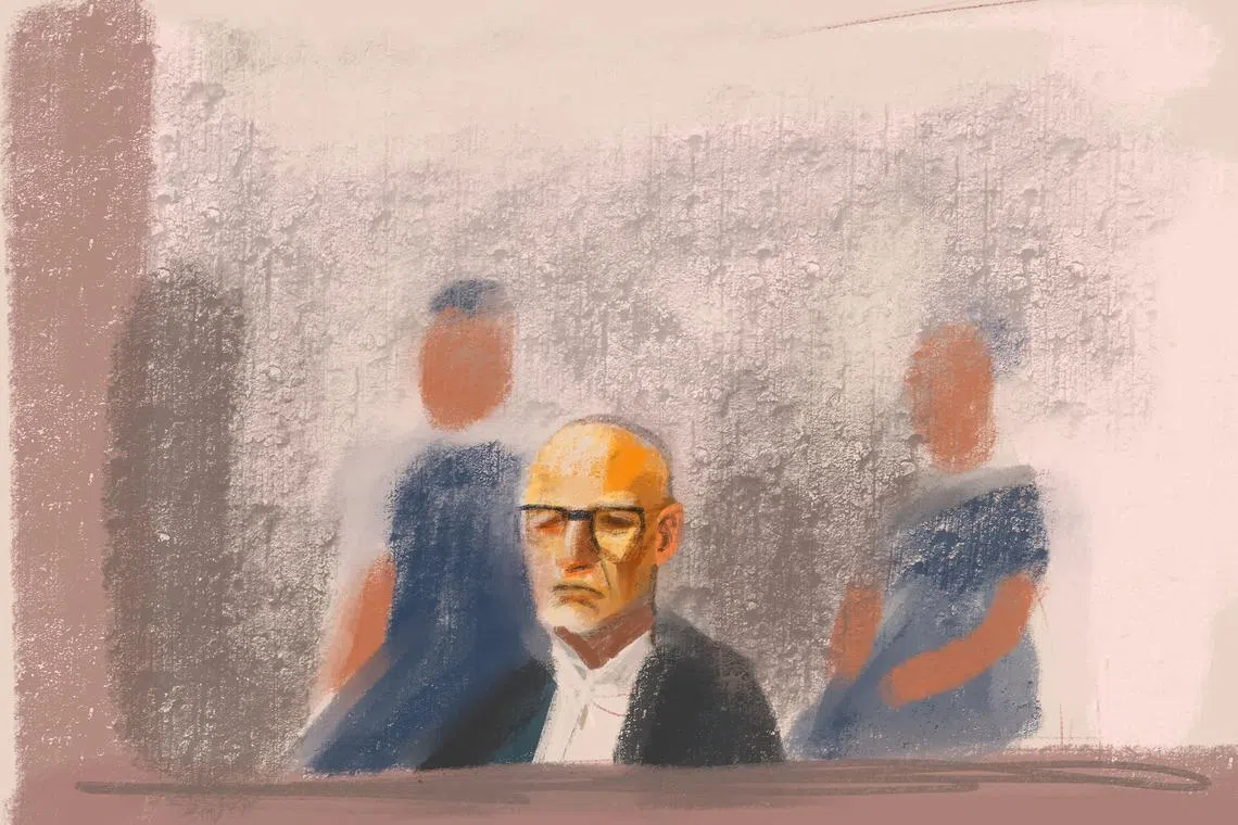 He glanced at his family seated in the gallery from time to time and nodded at them, with his wife nodding back.