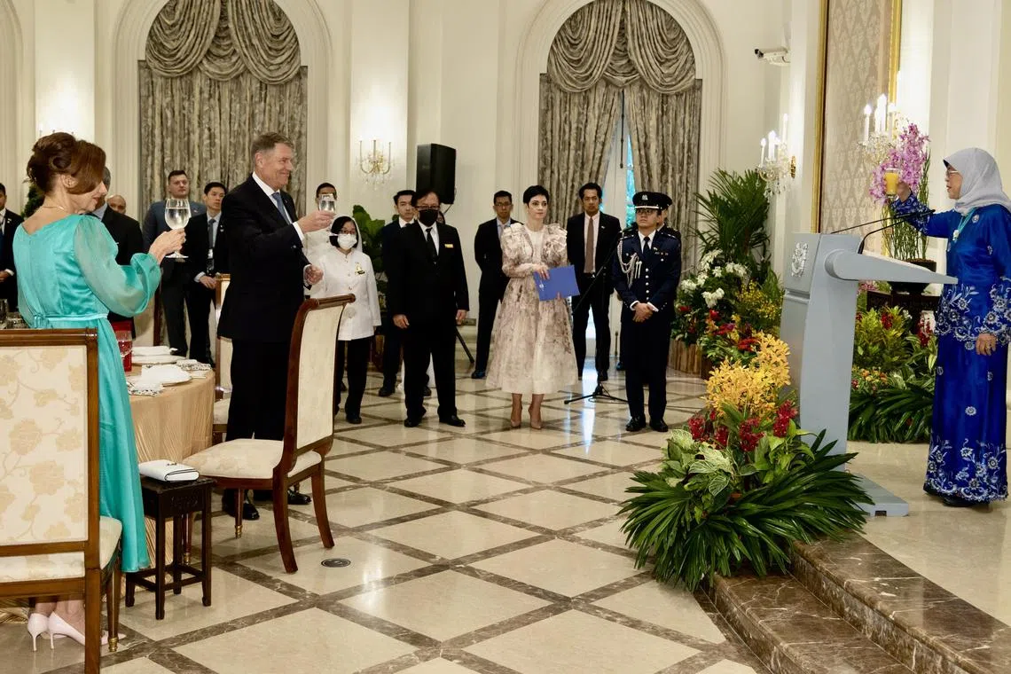 During a speech at a state banquet she hosted for Romanian President Klaus Iohannis at the Istana, Madam Halimah said the pair had earlier reaffirmed bilateral ties, which are buttressed by good cooperation at international forums and a shared commitment to free trade, multilateralism and a rules-based international order.
