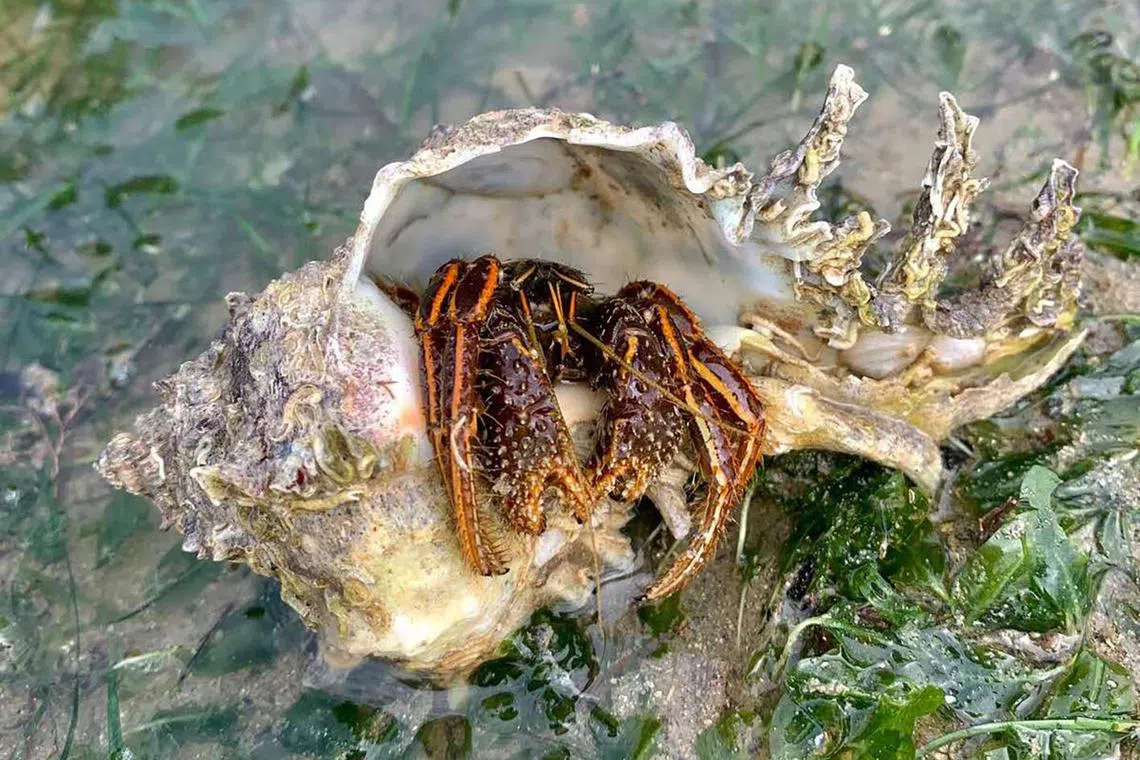 Identified by its striking legs, this hermit crab is a common resident of Singapore’s shores.