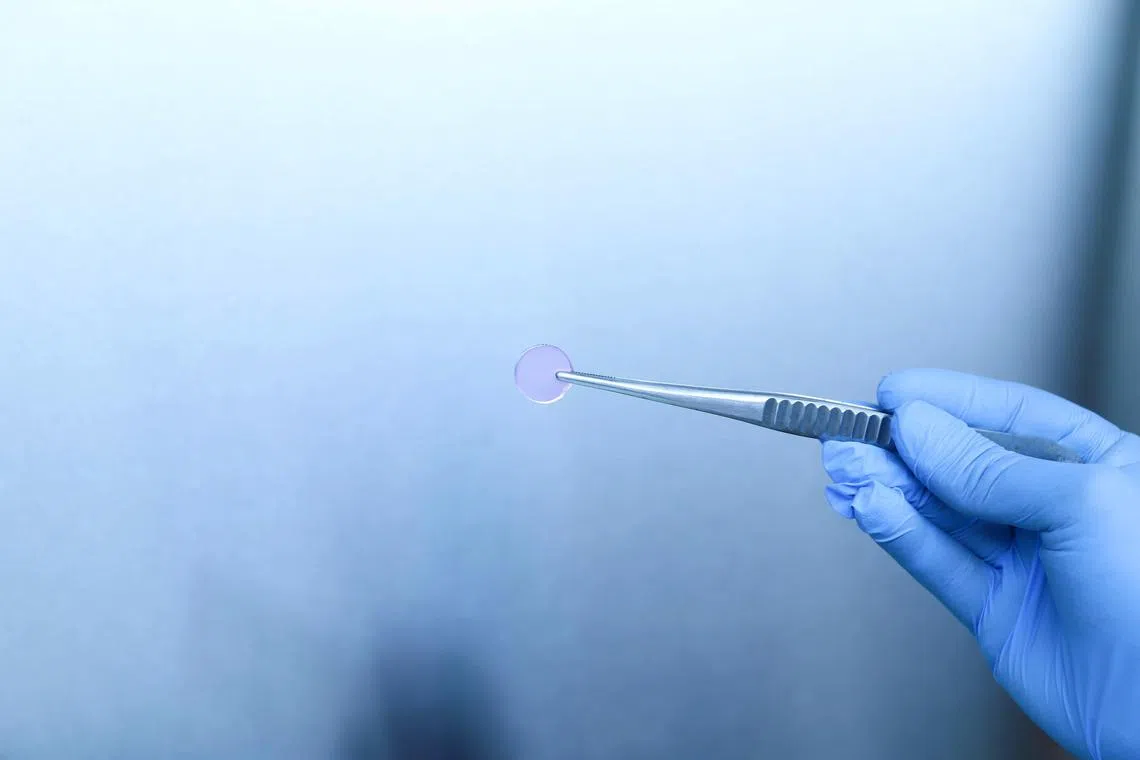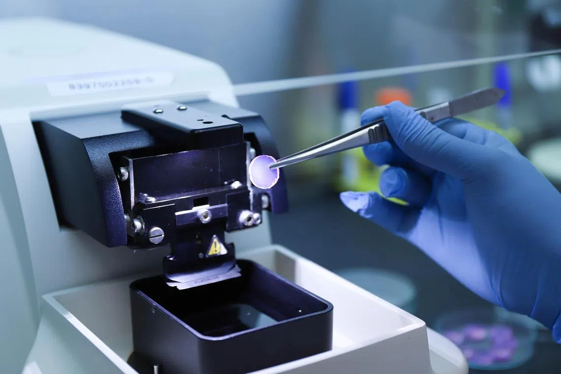 The researchers used a vibrating microtome machine to shave precise fragments of the tumour removed from the patient, to be cultivated on a hydrogel disc.