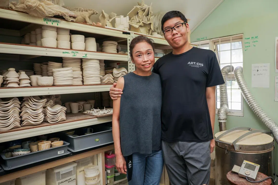 Mr Zack Ling, 19 and his mother, Ms Julie Wong, 53, at ART:DIS, where he gets commissioned to produce ceramics like sake cups.