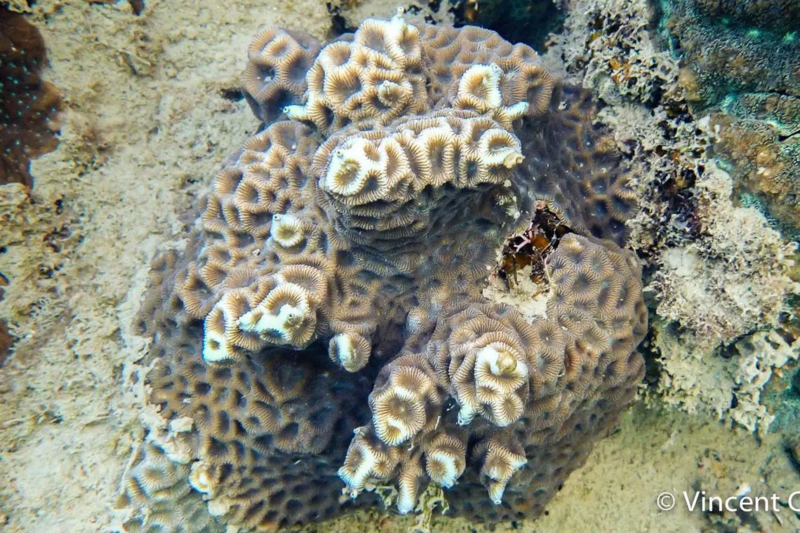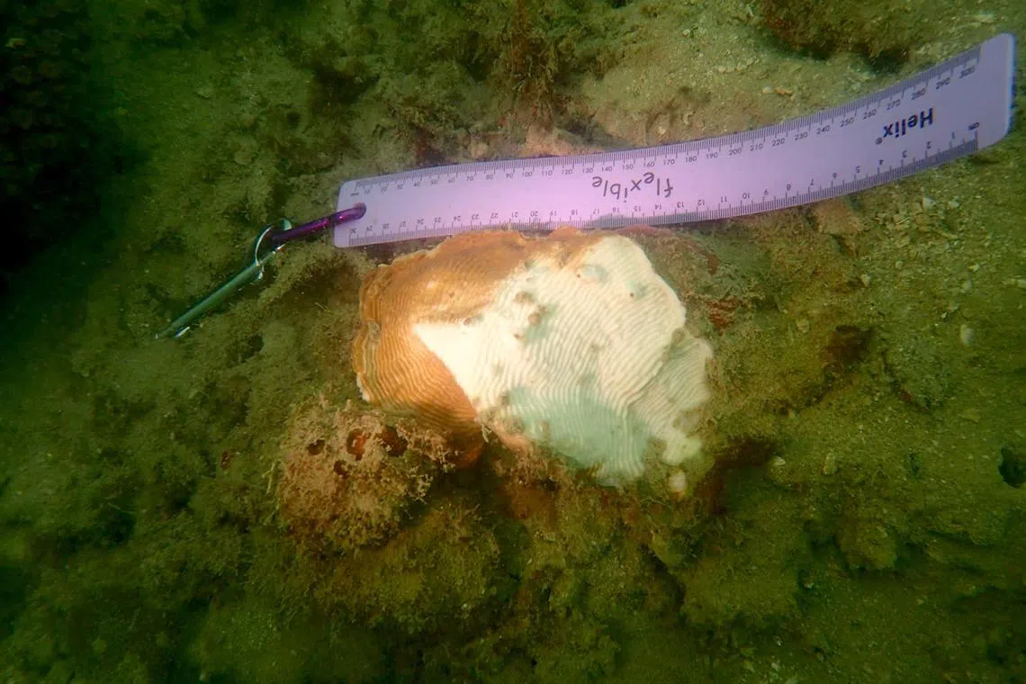 A hard coral in Pulau Hantu showing signs of bleaching on May 4.