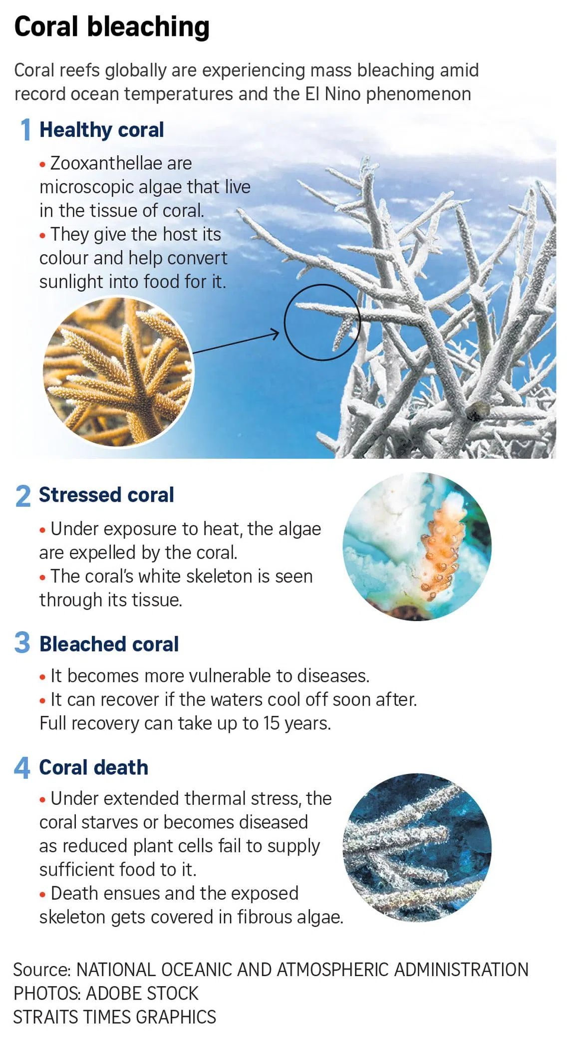 The agency, alongside marine enthusiasts and divers, has been keeping a closer watch on the health of the reefs amid higher sea-surface temperatures. Efforts include taking note of the level of bleaching while diving.