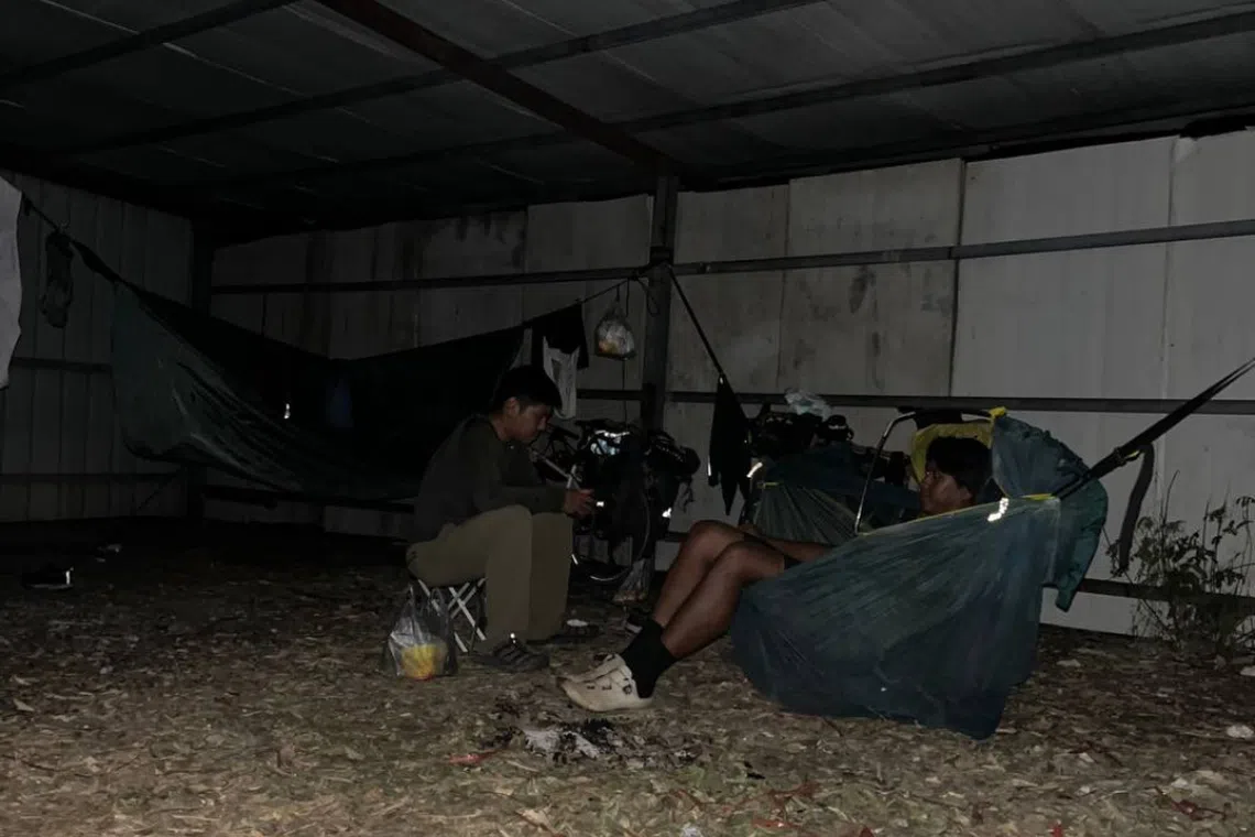 Mr Chong Lezhen (left) and Mr Ramadhan Rajab spent their nights at any nearby accommodation or wherever they could pitch a tent.