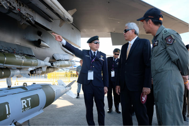 The SAF is displaying one of its F-15SG fighter aircraft, along with munitions such as the AIM-120 Advanced Medium-Range Air-to-Air Missile. In addition, the A330 Multi-Role Tanker Transport also performed a flypast as part of Tuesday's aerial display programme.