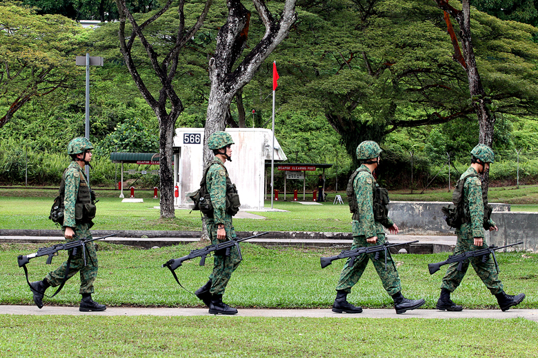 File photo of NSmen carrying their weapons for a live-firing exercise at Nee Soon Camp. The Singapore Armed Forces will be conducting military exercises across Singapore next week, including live-firing exercises by the army and the air force.