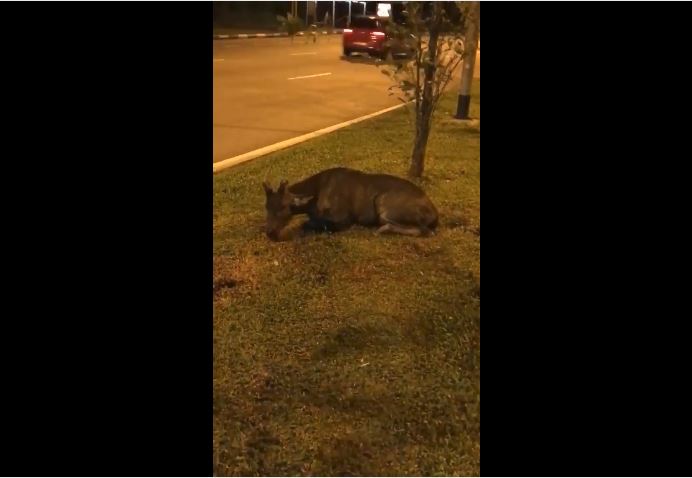 Emergency medical technician Muhammad Iqbal Zainudin told The Straits Times on Monday that he was driving to work at about 8.30pm when he saw the animal standing in a pool of blood in the middle of the road, with some metal debris nearby.