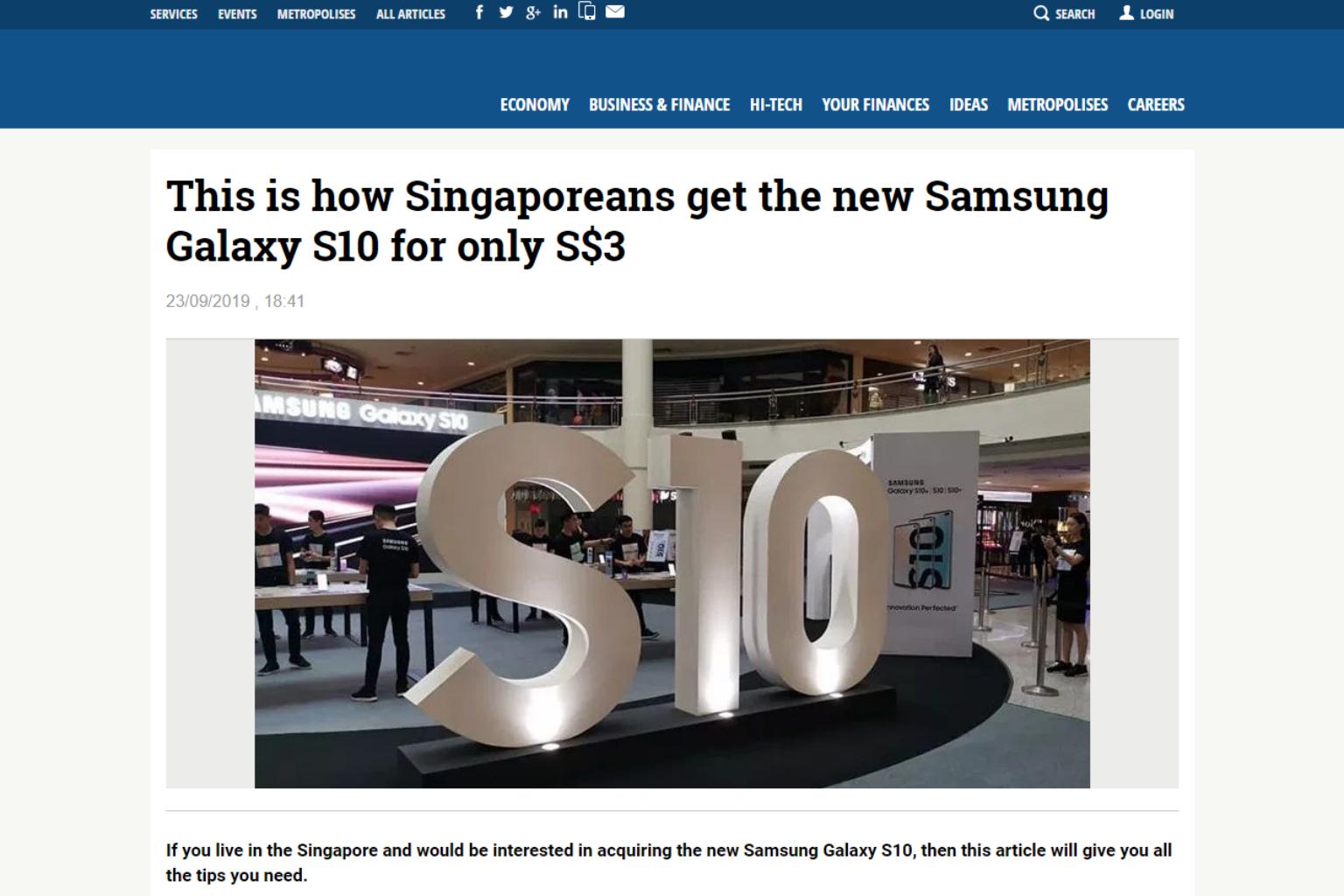 The fake report claimed that Samsung was working with its distribution partner to give out the Galaxy S10 phones because the company was trying to increase its market share in Singapore.