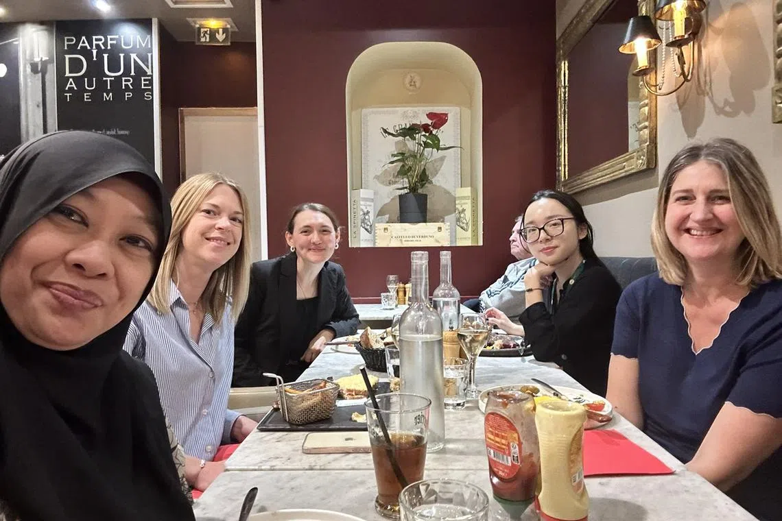 Career coaching gave Madam Nurhani (far left) the confidence to start over; today, she’s a senior coordinator at Insead Asia Campus, where she’s had opportunities to travel to the business school’s Europe campus in France for work.