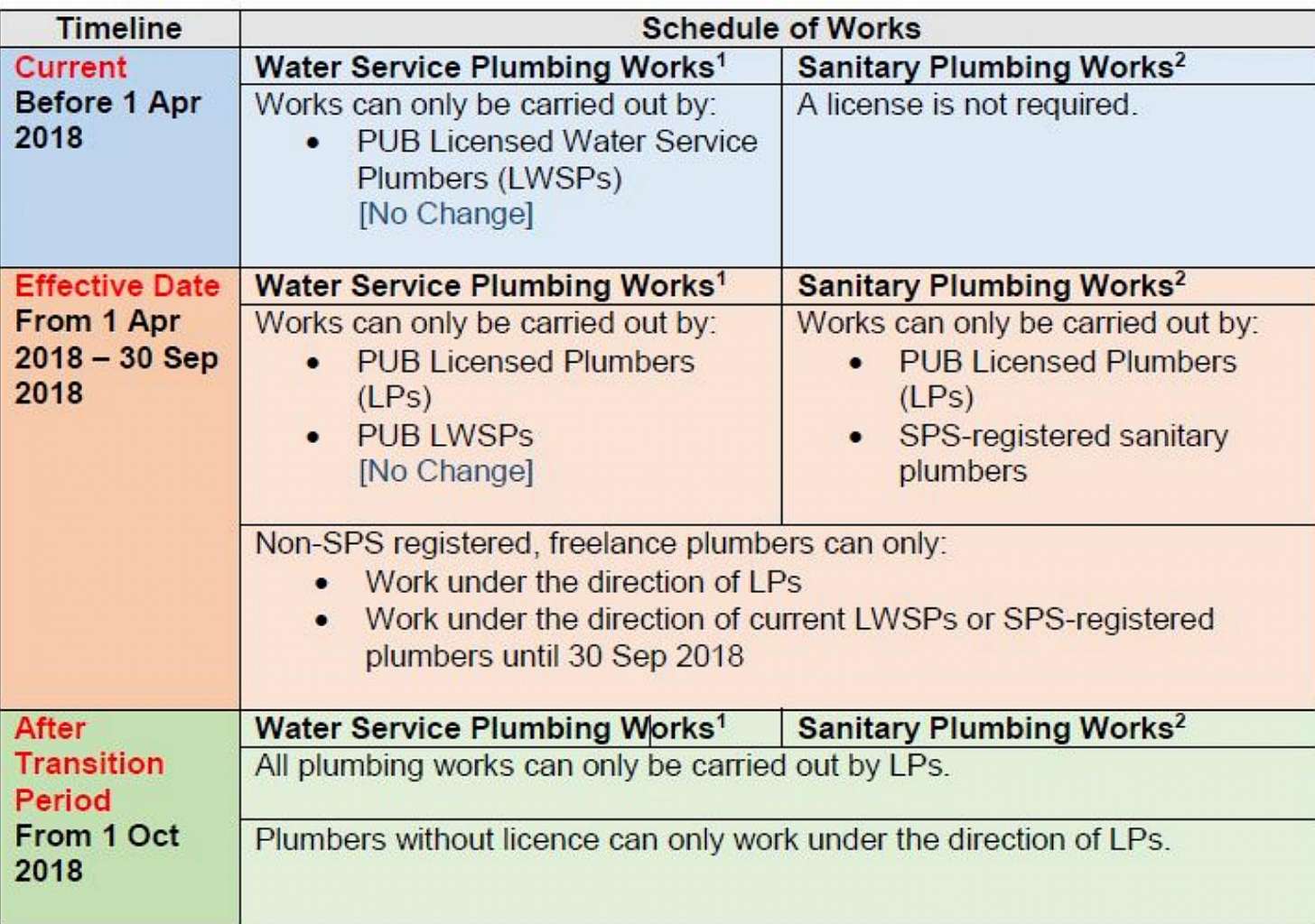 PUB estimated that about 260 plumbers currently licensed under the LWSP scheme, who also hold the Singapore Plumbing Society's (SPS) registration certificate for sanitary plumbers, will automatically qualify for the new LP licence.