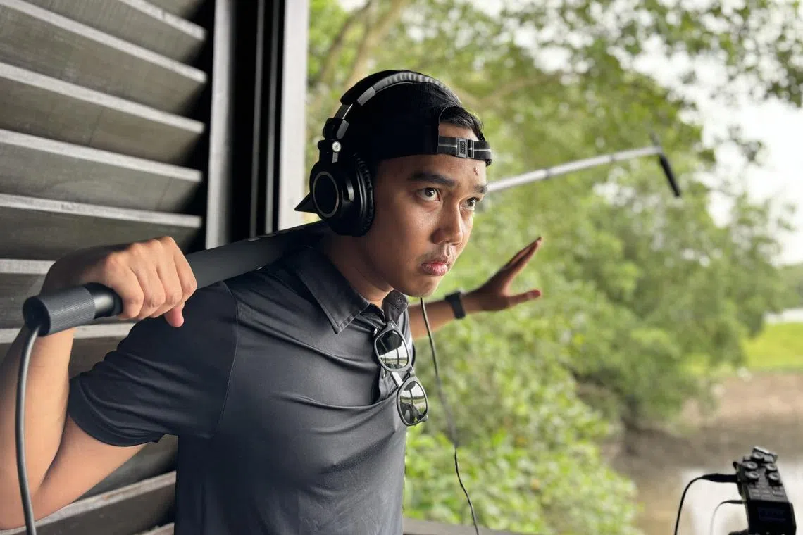 Podcast producer Amirul Karim capturing ambient sounds at Sungei Buloh Wetland Reserve.