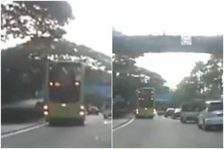 In the dashboard camera video footage, which was posted on Facebook page Roads.sg, the bus was shown on the leftmost lane with its reverse lights on. Other vehicles could be seen moving slowly past it in the next lane.