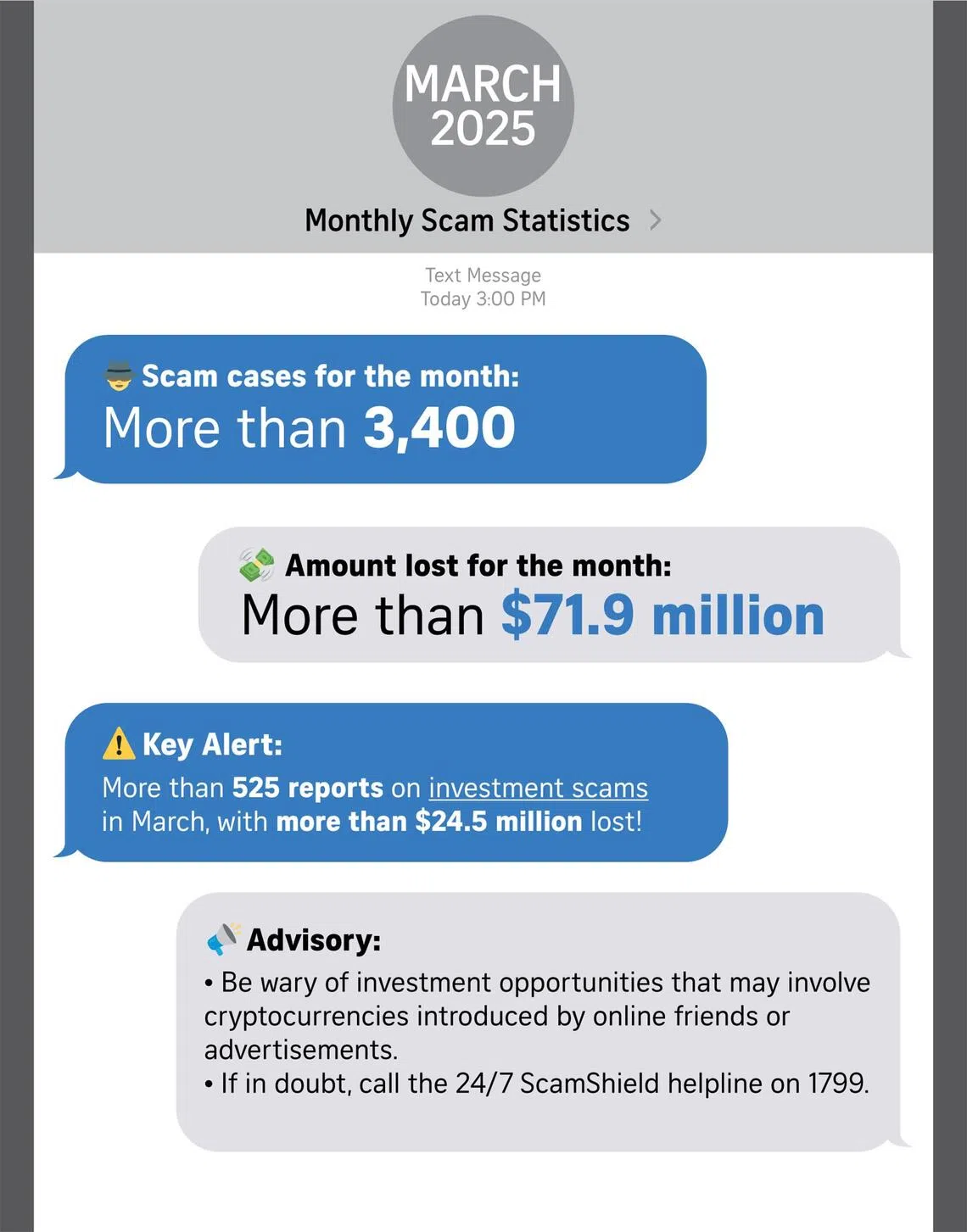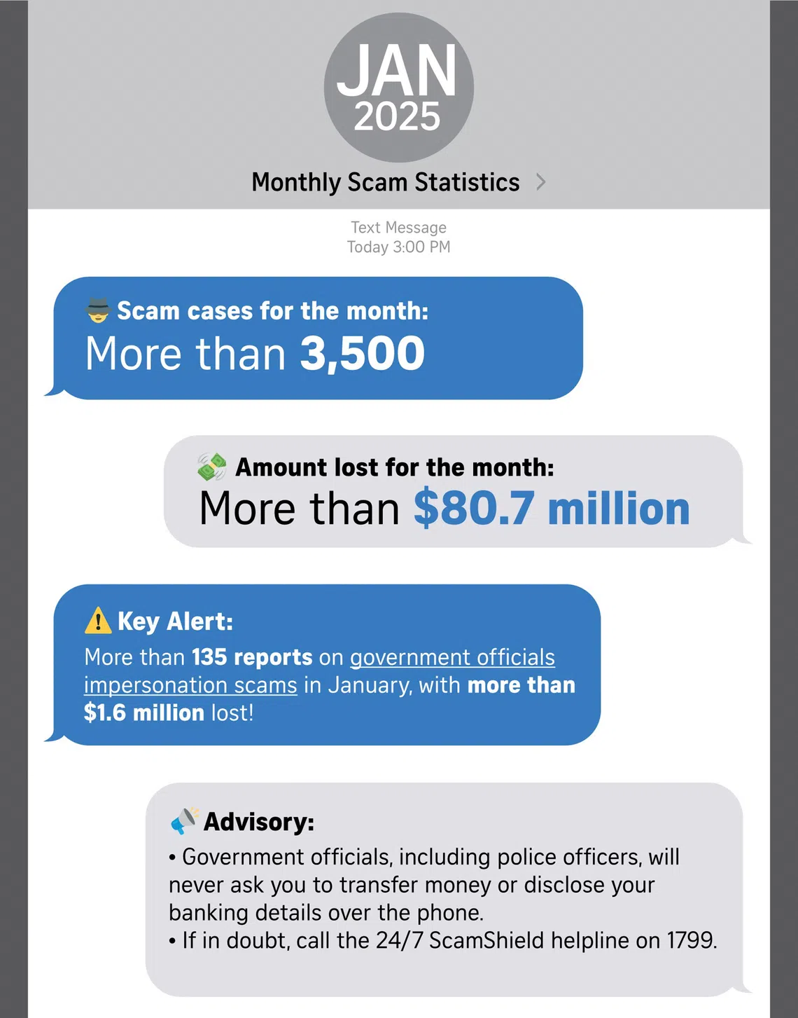 Members of the public are advised to add security features like the ScamShield app to help identify potential scam messages and calls, and to install antivirus apps to protect their devices against malware.