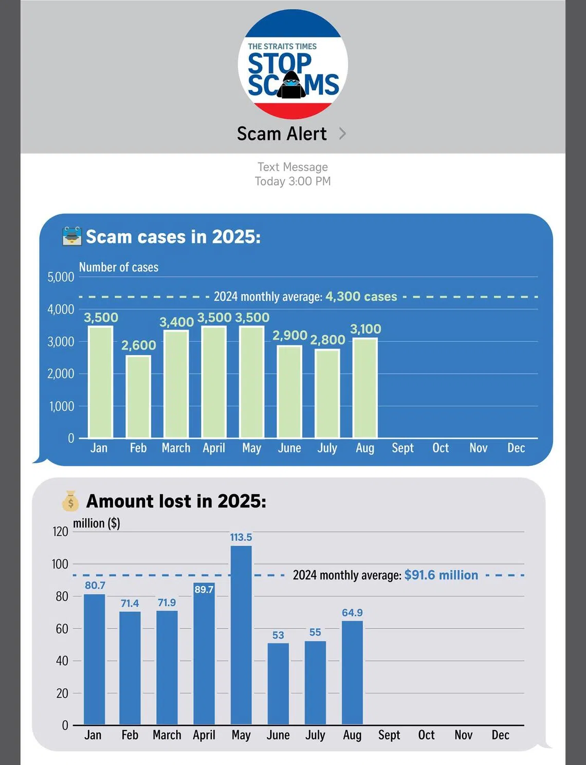 Singapore has lost more than $3.4 billion to scams since 2019, with a record annual high of $1.1 billion in 2024 alone. The Straits Times looks at the latest scam trends in 2025 and will be providing updated figures monthly.