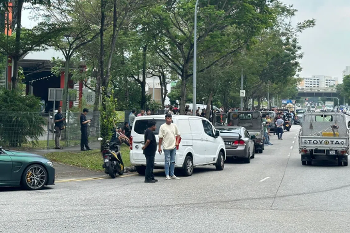 When ST arrived at around 3pm, hundreds of workers were sitting by the side of Kaki Bukit Road 4.