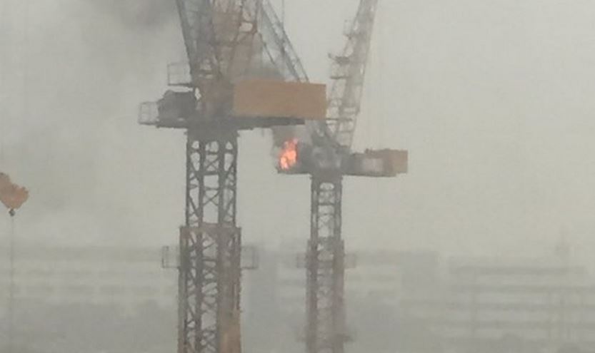 A video of the incident was uploaded on Twitter by user @fitr_firh, which showed flames and a plume of thick black smoke emitting from the crane's operator cabin.