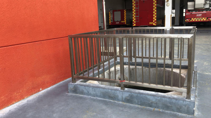 The fire station pump well at Tuas View Fire Station where Singapore Civil Defence Force full-time national serviceman (NSF) Corporal Kok Yuen Chin was found unconscious.