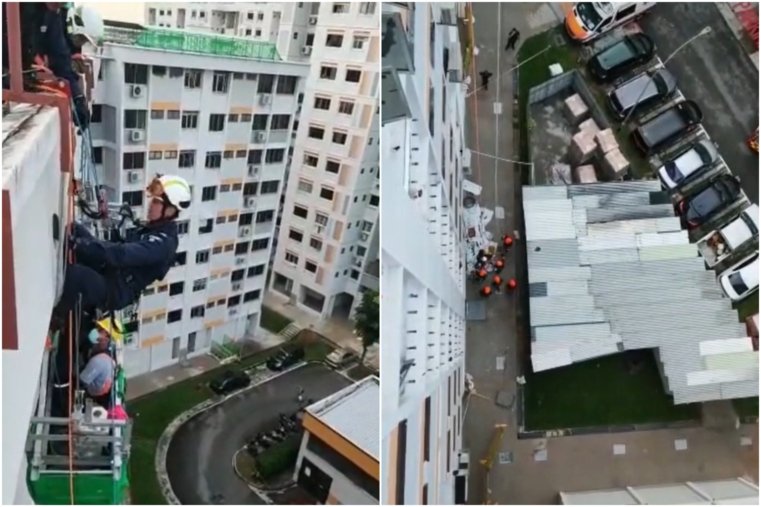 The SCDF was alerted at 5.30pm, and firefighters from Bukit Batok Fire Station arrived at Block 104 Teck Whye Lane and assessed the gondola's stability and the condition of the worker from the rooftop.