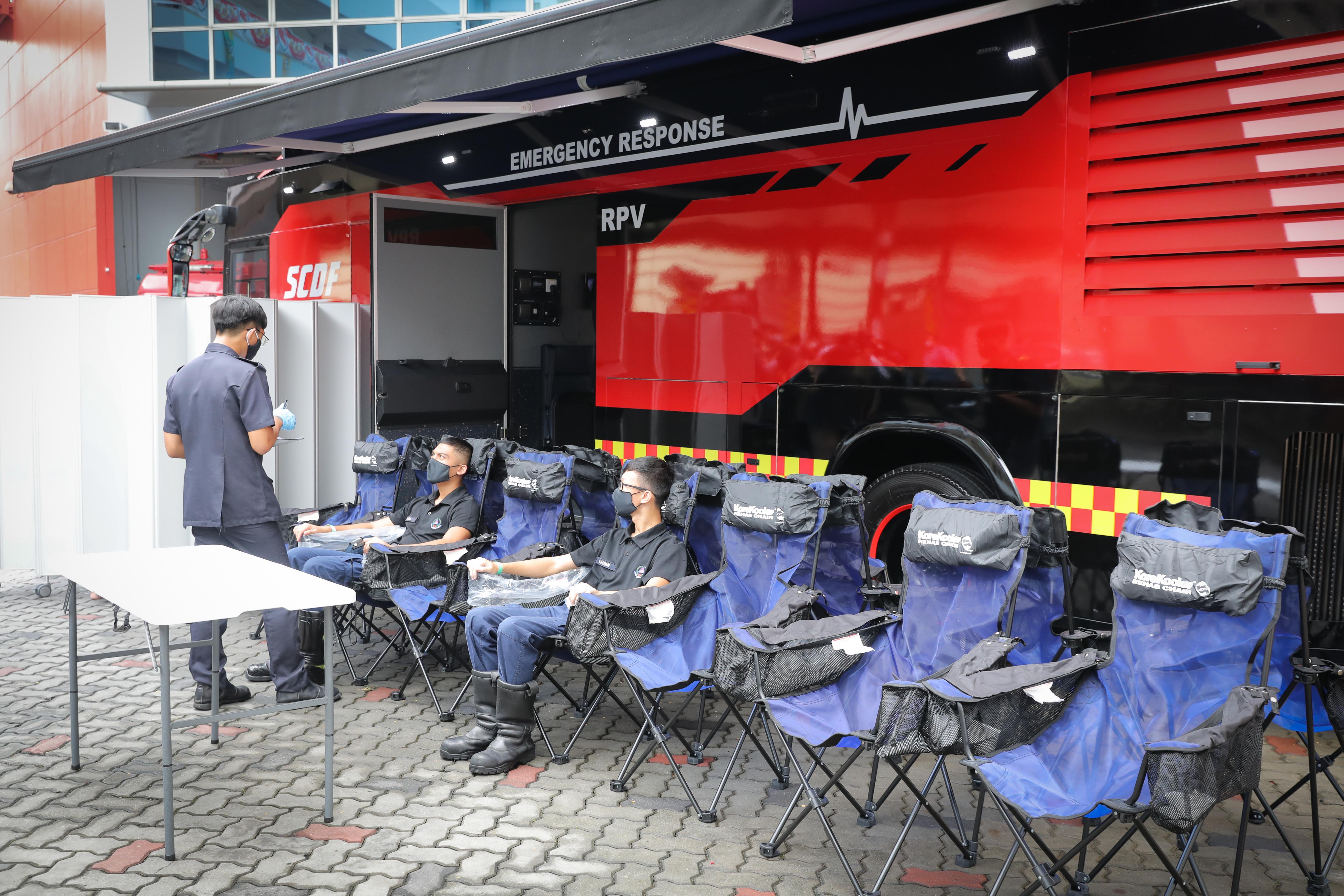 SINGAPORE - Emergency responders during prolonged operations now have a rehabilitation area and can receive treatment for a range of heat injuries in a responders' performance vehicle (RPV).