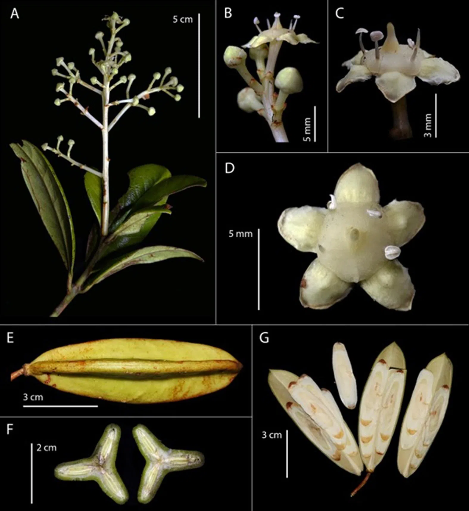 The flowers and fruits of the newly discovered giant peat tree.