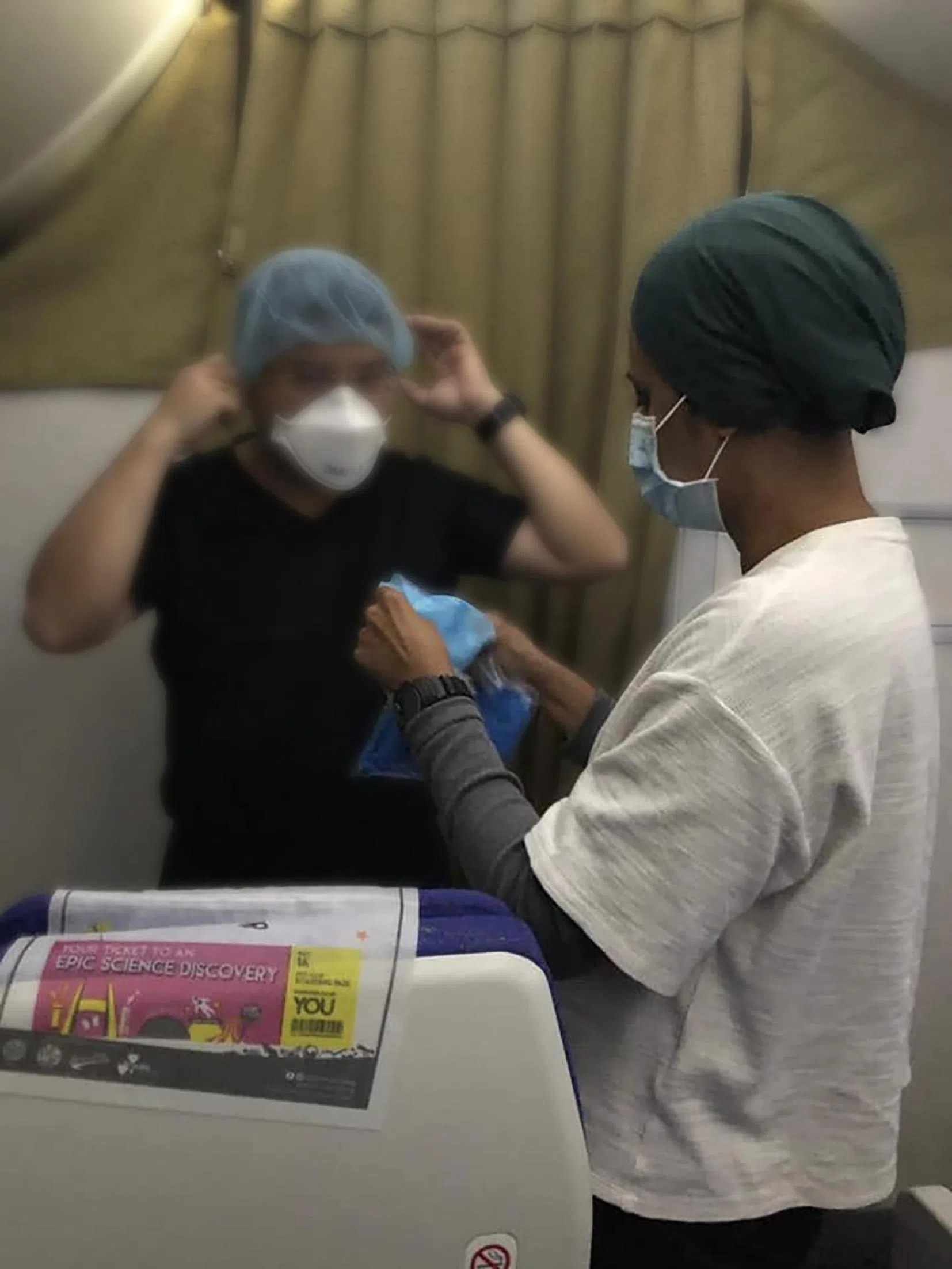 Raffles Medical manager Emiliah Hamzah, 46, responded to the call for on-board medical personnel because of her experience as a paramedic during the 2003 severe acute respiratory syndrome, or Sars, outbreak. The trained nurse also attended to the injured passenger on board.