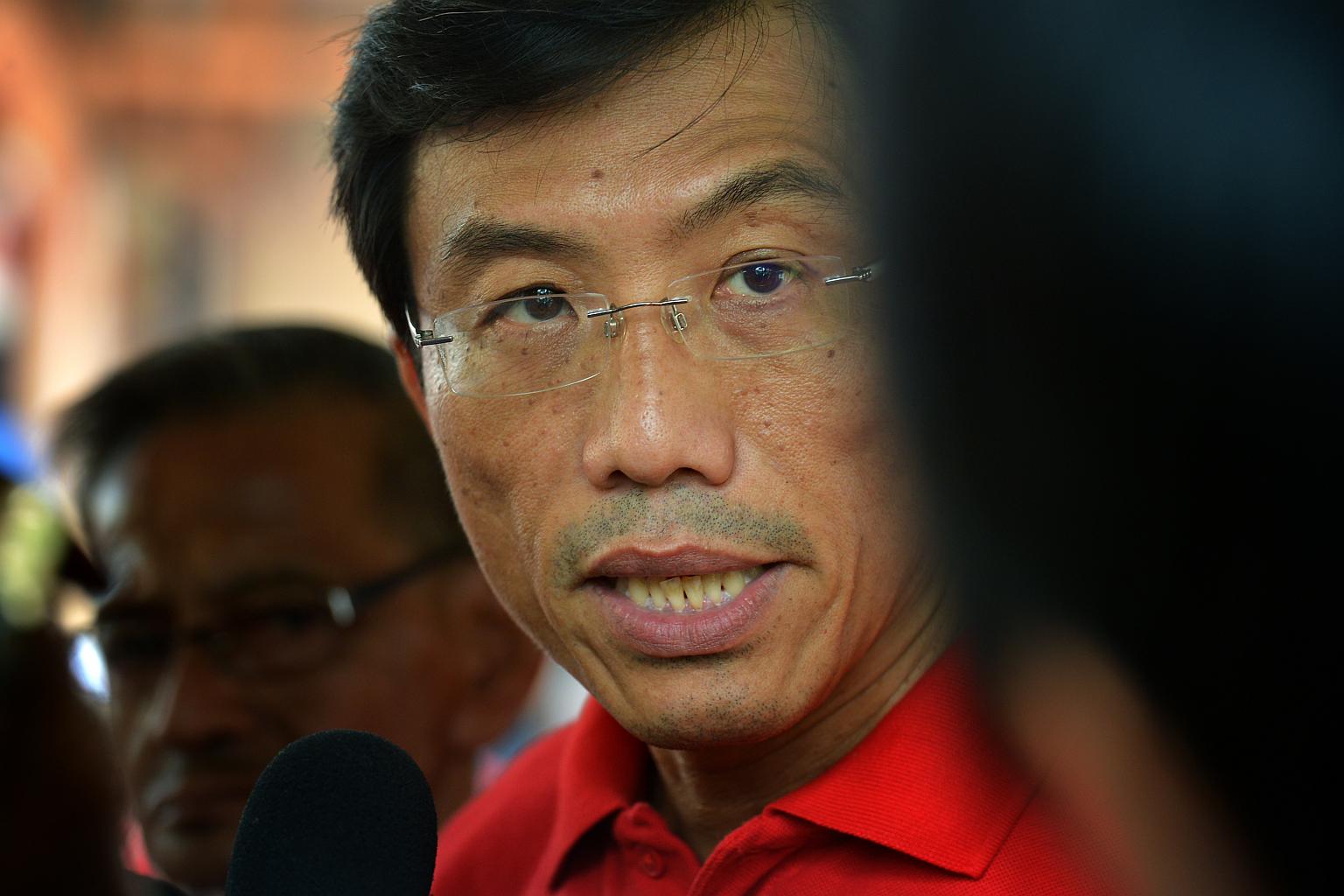 Dr Chee Soon Juan reacts as he speaks to reporters.