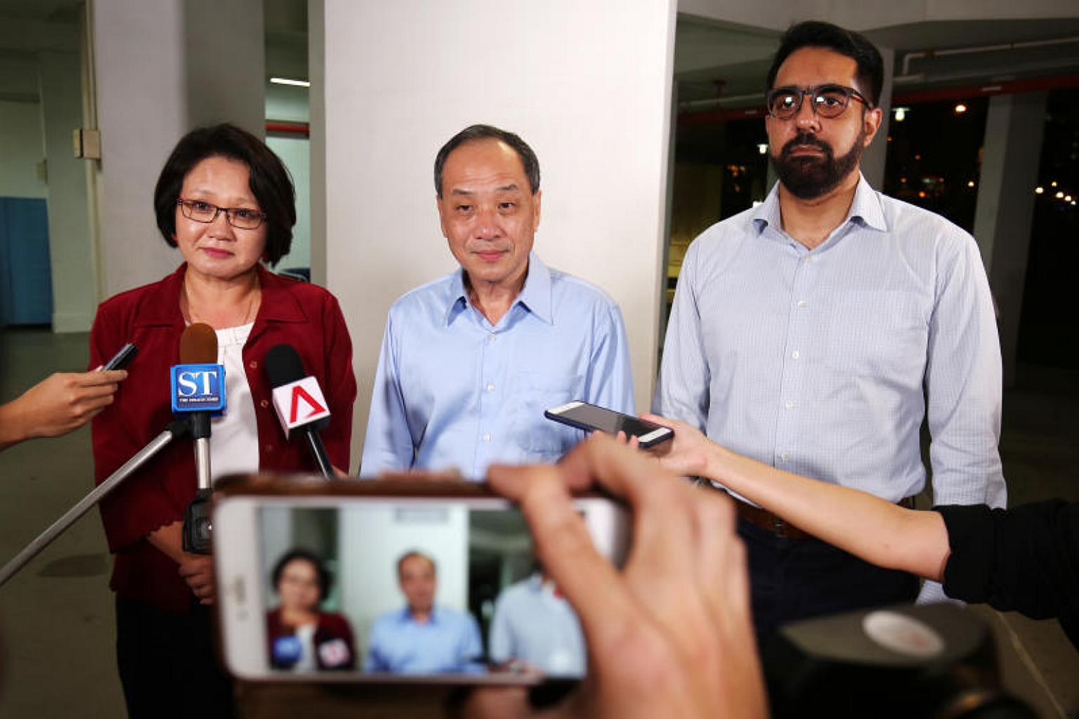 In a statement on Wednesday (Sept 6), the SDP said it objected to the claim made by WP chief Low Thia Khiang (centre), which was submitted as an annex to his defence in a lawsuit brought by the Aljunied-Hougang Town Council.
