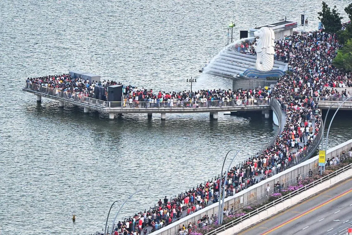 Sea of red fills up Merlion Park, Marina Barrage to catch a glimpse of NDP festivities