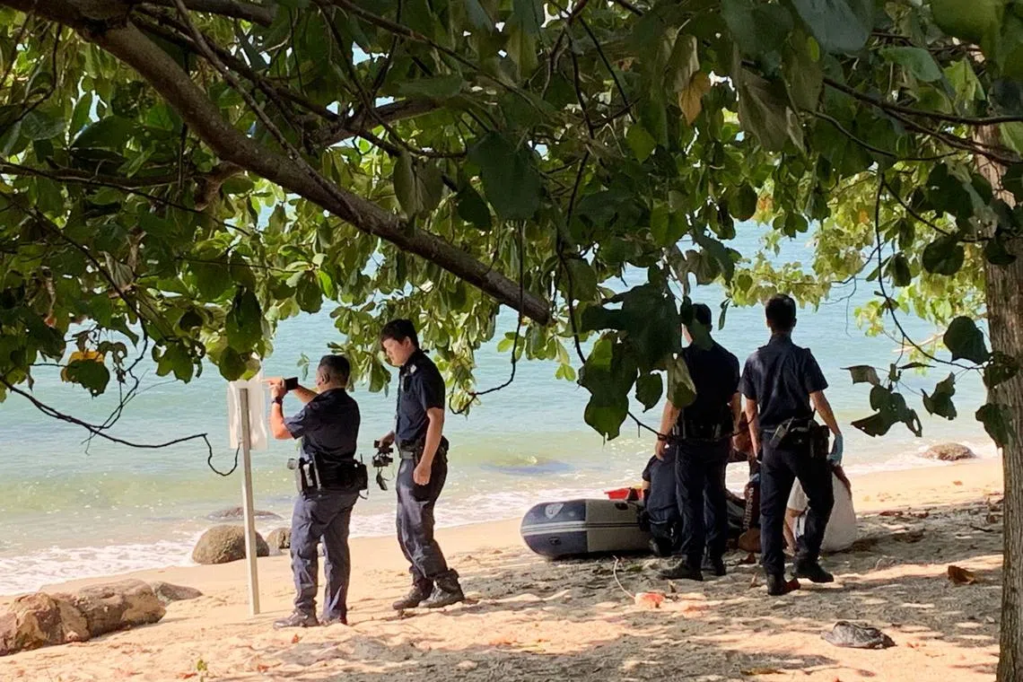 The police were seen speaking to a man on the shore next to an inflatable rubber raft after the incident, Shin Min reported.