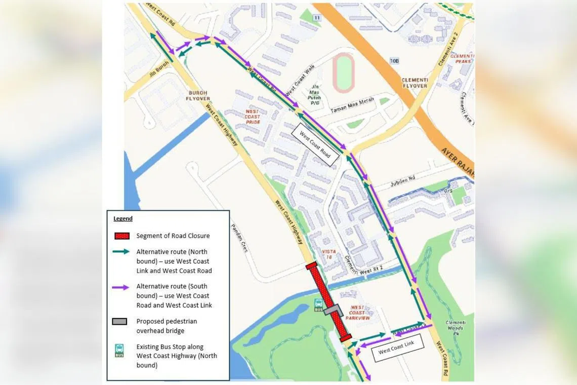 During the road closures, motorists are advised to use West Coast Link and West Coast Road as an alternative route to the closed segment of the highway.