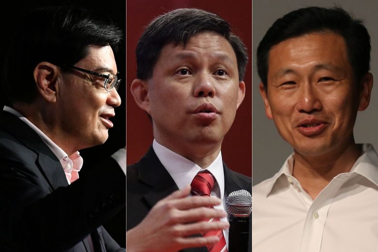 Many believe the race for the prime minister's post has narrowed to three contenders: Finance Minister Heng Swee Keat, Minister in the Prime Minister's Office Chan Chun Sing and Minister for Education (Higher Education and Skills) Ong Ye Kung.