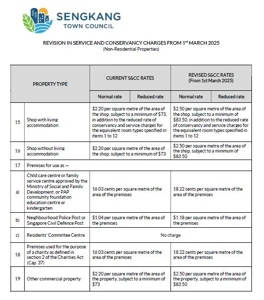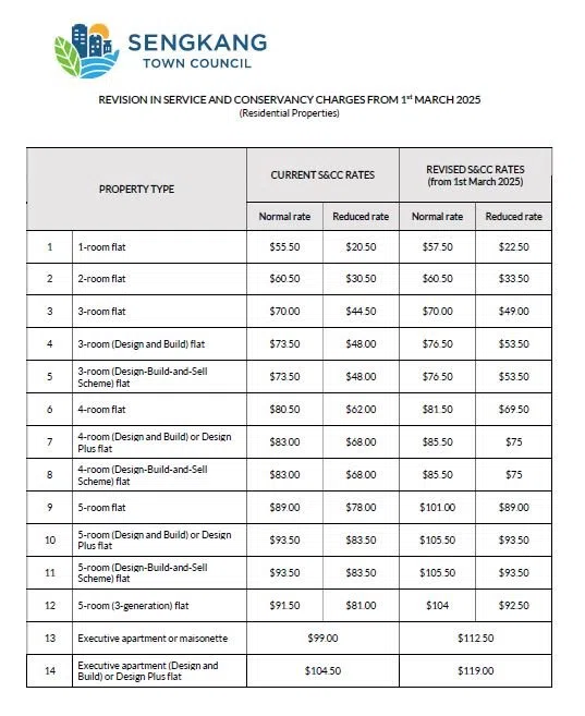 SINGAPORE - Sengkang Town Council (SKTC) will be increasing service and conservancy charges (S&CC) for its residents and tenants from March 1, 2025.