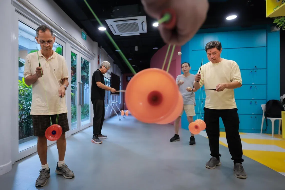 SINGAPORE – A group of senior men gathered at the Goodlife Studio (Telok Blangah Towers) on Aug 7, transforming the active ageing centre (AAC) into a circus stage.