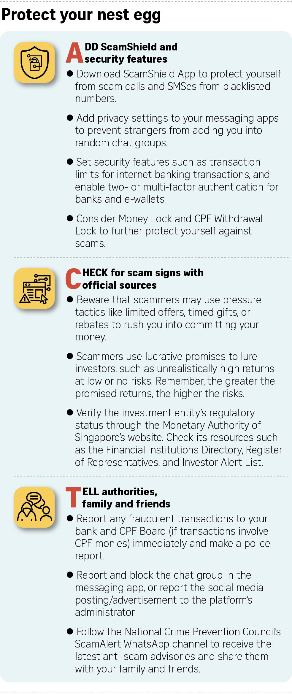 CPF members may draw on their CPF savings from age 55. But they should be wary of investment scams targeting their retirement nest egg, says Police Superintendent Matthew Choo, assistant director of the Scam Public Education Office, Singapore Police Force.