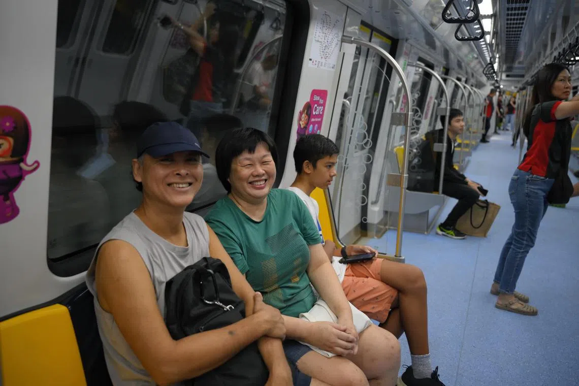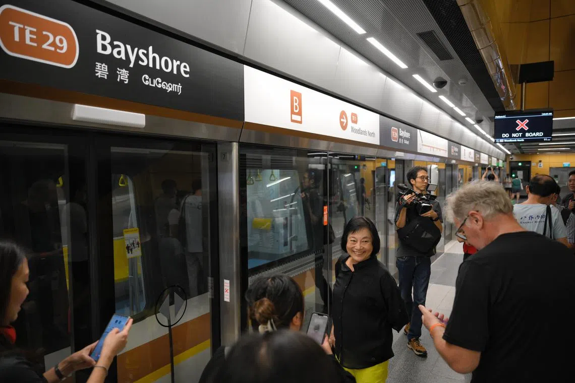 Madam Janice Lau, who lives in a condo that is a five-minute walk from Bayshore station, wanted to get on the first train because she had been waiting for the opening for a long time.