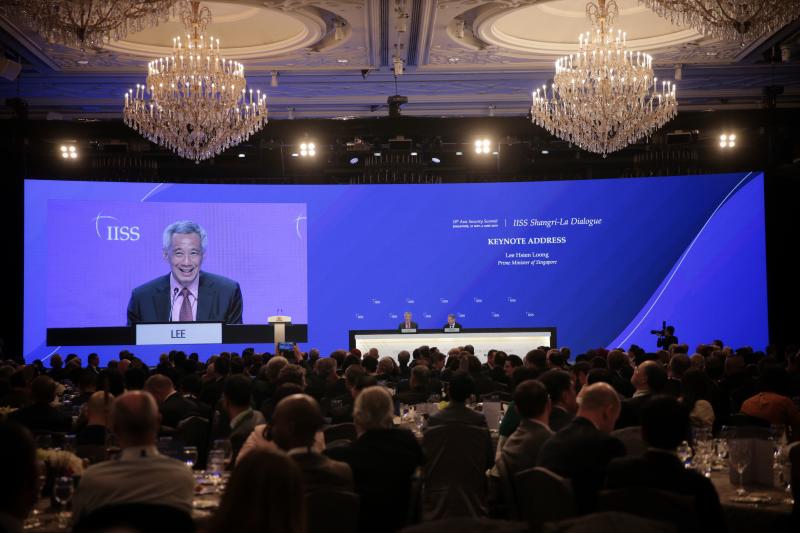 Prime Minister Lee Hsien Loong takes part in a question-and-answer session after delivering his keynote address at the Shangri-La Dialogue on May 31, 2019.
