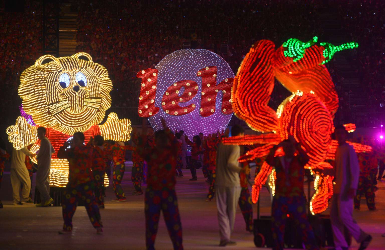Float bearing Singlish phrases and hawker food icons during the National Day Parade 2015 at the Padang.