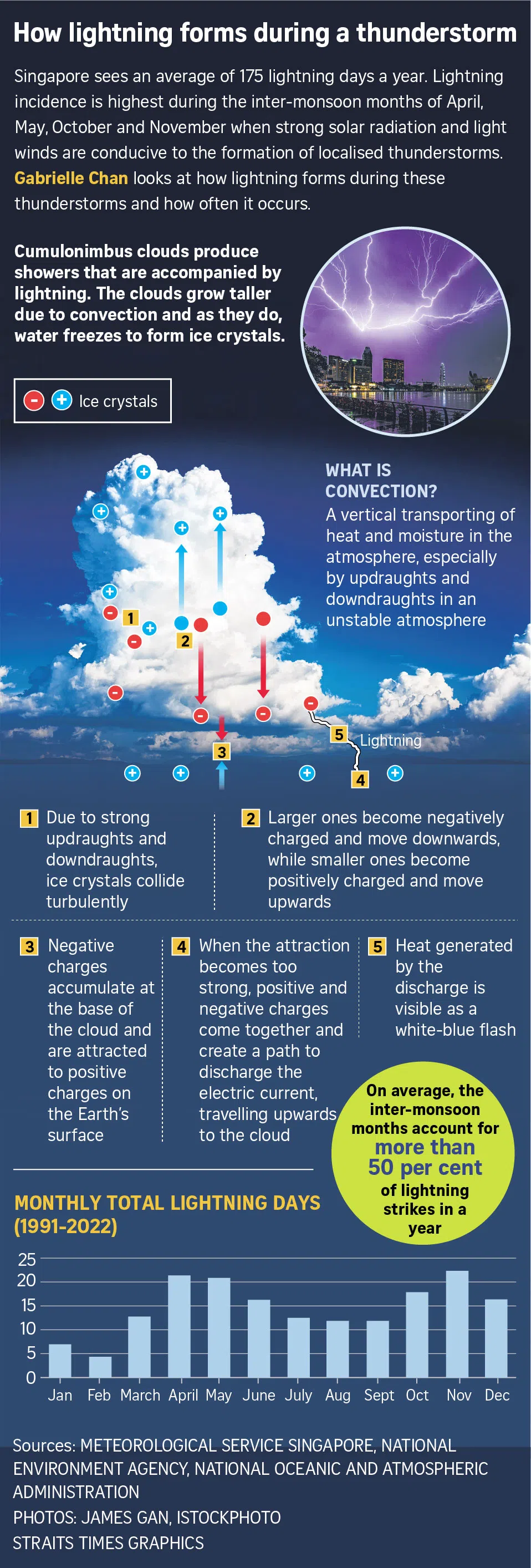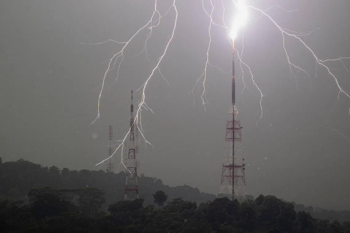 In Singapore, about 50 per cent of a year’s lightning days are in April, May, October and November – months that fall between the two major monsoon seasons.