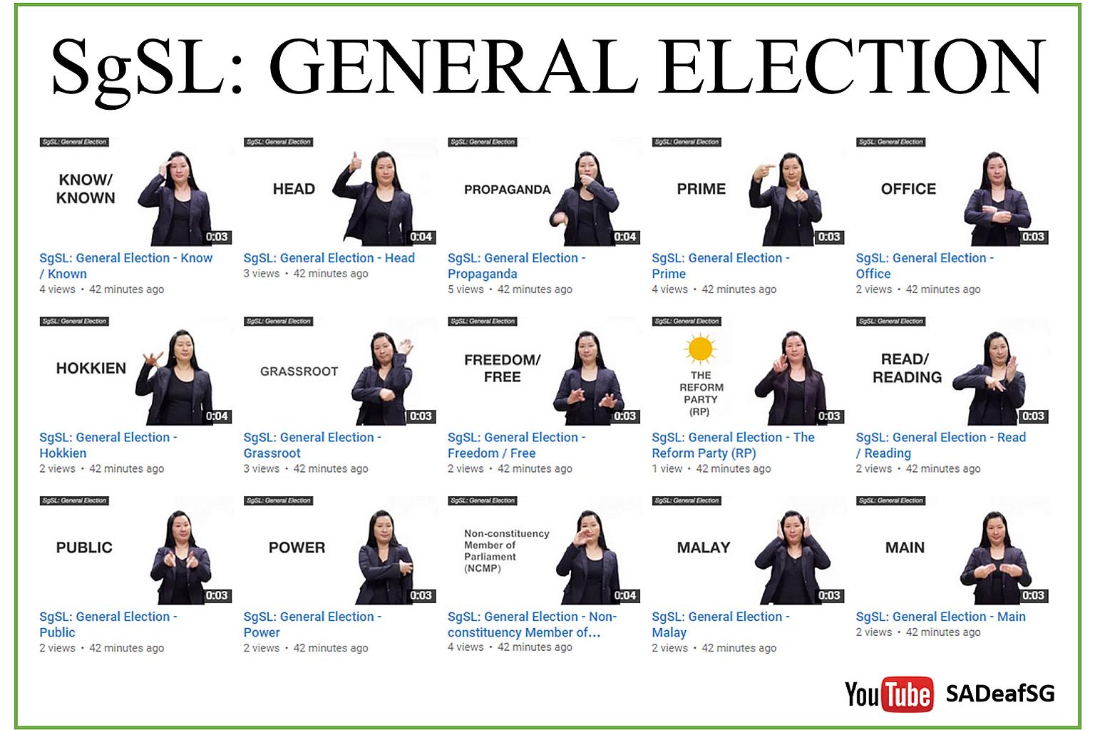 The sign language videos uploaded on the YouTube channel SADeafSG by the Singapore Association for the Deaf (SADeaf) range from two seconds to six seconds long.